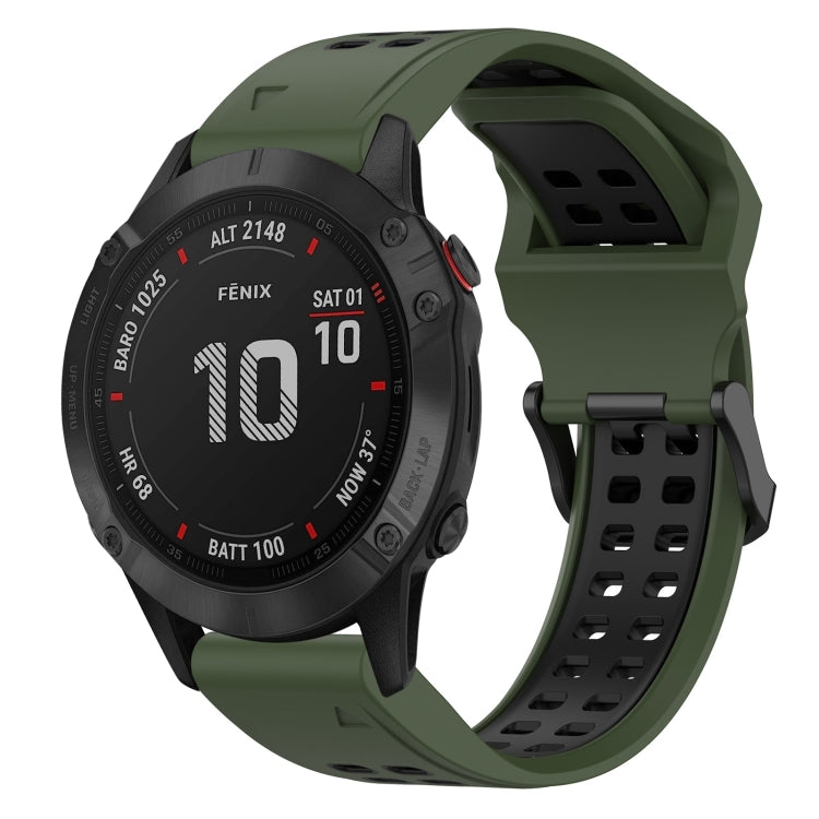 Correa de Reloj Garmin Fenix 6 Pro 22mm Silicona con Hebilla Inversa (Verde Militar + Negro)