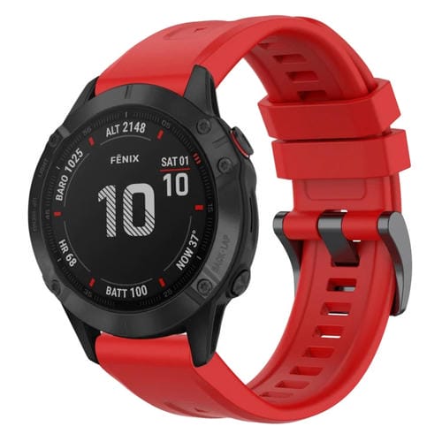 Correa de Silicona para Garmin Fenix 6 Pro GPS con Hebilla Negra y Liberación Rápida (Rojo)