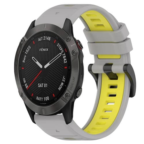 Correa para Garmin Fenix 6 Sapphire GPS 22mm Silicona Deportiva Bicolor (Gris + Amarillo)