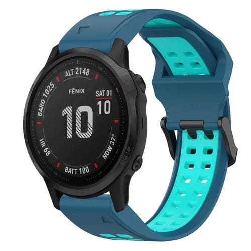 Correa de Silicona para Garmin Fenix 6S Pro 20mm con Hebilla Inversa Dos Colores (Azul + Verde Azulado)