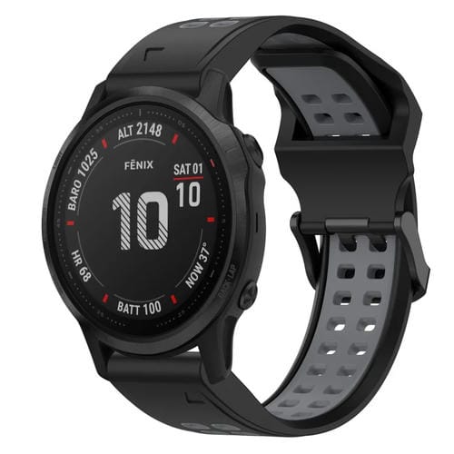 Correa de Silicona para Garmin Fenix 6S Pro 20mm con Hebilla Inversa Dos Colores (Negro + Gris)
