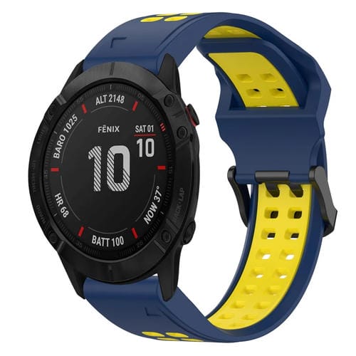 Correa de Reloj para Garmin Fenix 6X 26mm Silicona con Hebilla Inversa Dos Colores (Azul + Amarillo)