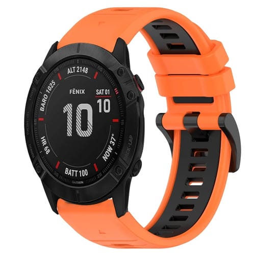 Correa silicona deportiva Garmin Fenix 6X Sapphire 26mm bicolor (Naranja + Negro)