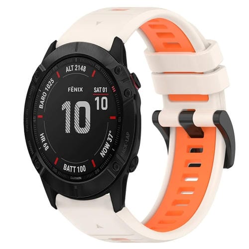 Correa para Garmin Fenix 6X Sapphire 26mm Silicona Deportiva Bicolor (Starlight + Orange)