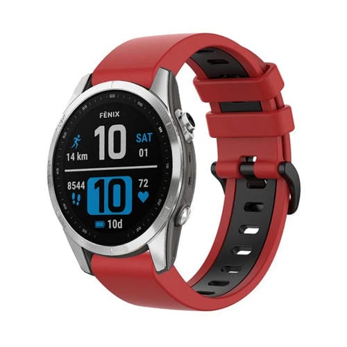 Banda Deportiva Silicona para Garmin Fenix 7 22mm Dos Colores (Rojo+Negro)