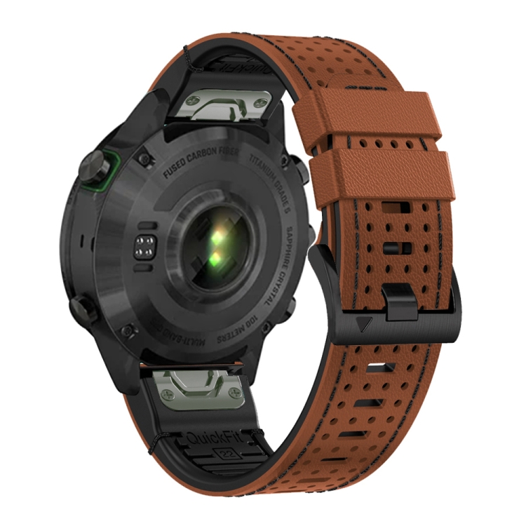 Correa de Reloj para Garmin Fenix 7 de Liberación Rápida Cuero y Silicona con Orificio de Punto 22mm (Marrón Negro)