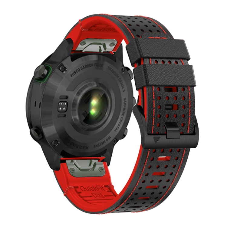 Correa de Reloj para Garmin Fenix 7 de Liberación Rápida de Cuero y Silicona con Orificio de Punto 22mm (Negro Rojo)