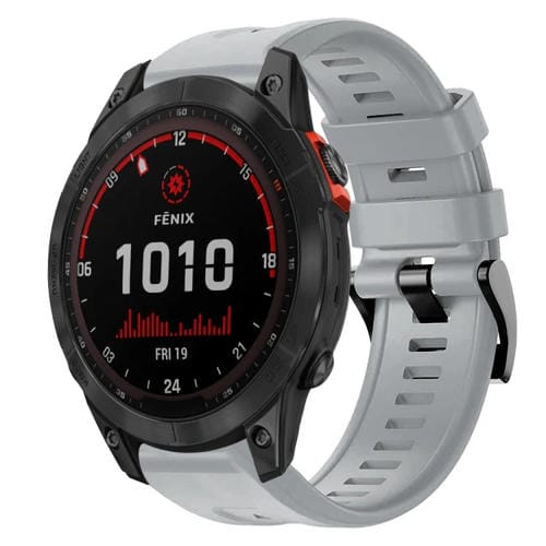 Correa de Reloj para Garmin Fenix 7 Silicona Color Sólido con Hebilla Metal Solar (Gris)
