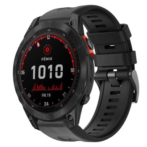 Correa de Reloj Silicona para Garmin Fenix 7 con Hebilla de Metal Solar (Negro)