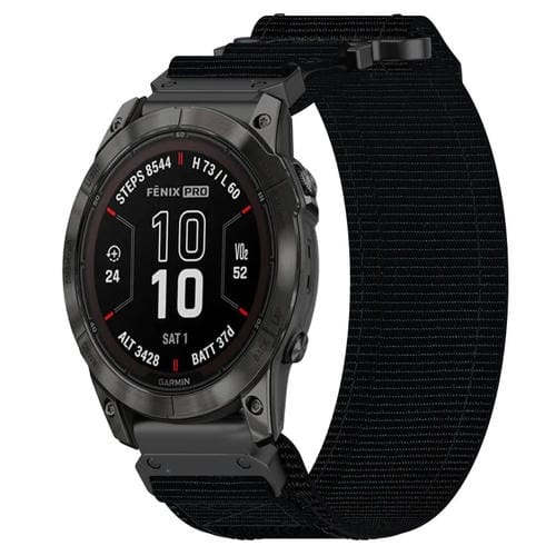 Correa de Reloj para Garmin Fenix 7 Pro 47mm 22mm Nailon con Cierre de Gancho y Bucle (Negro)
