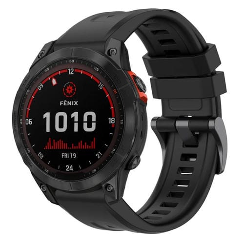 Correa de silicona para Garmin Fenix 7 Solar / Sapphire Solar con hebilla negra y liberación rápida (Negro)