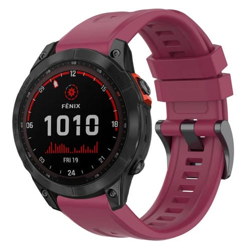 Correa de Silicona para Garmin Fenix 7 Solar / Sapphire Solar con Hebilla Negra y Liberación Rápida (Rojo Vino)