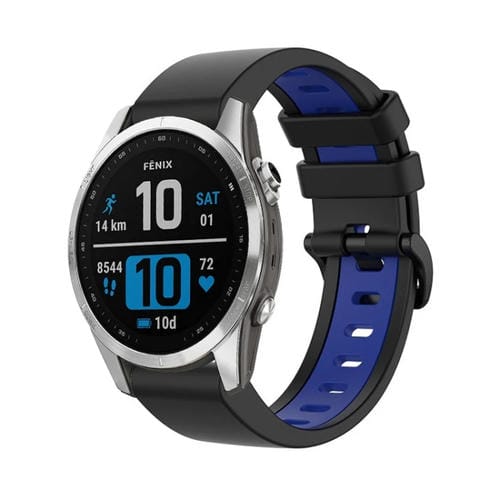 Correa de Silicona para Garmin Fenix 7S Pro 42mm Sports (Negro + Azul)