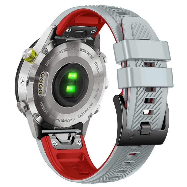 Correa de Silicona para Garmin Fenix 7X Liberación Rápida Dos Colores (Gris Claro y Rojo)
