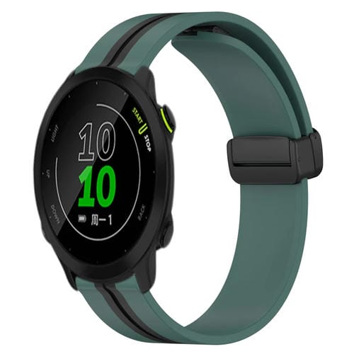 Correa de Reloj para Garmin Forerunner 158 20mm Silicona con Cierre Magnético Plegable (Verde Oliva + Negro)