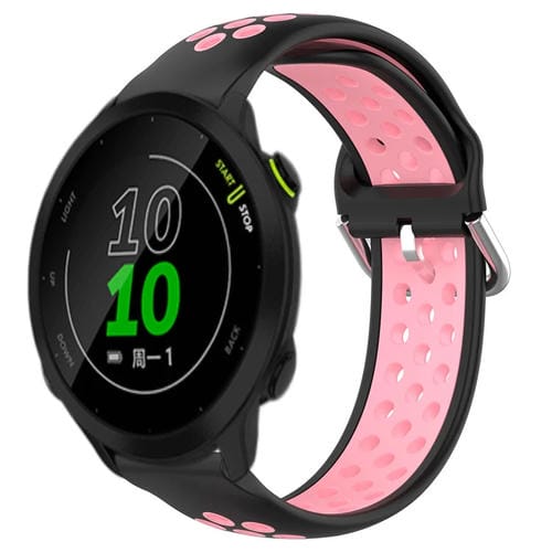Correa de Reloj Silicona para Garmin Forerunner 158 20mm Deportiva Transpirable (Negro + Rosa)