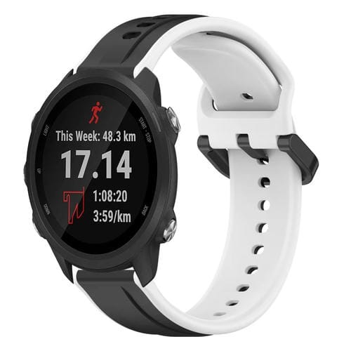 Banda de Reloj para Garmin Forerunner 245 Music Silicona Dos Colores Bucle Convexo 20mm (Negro + Blanco)