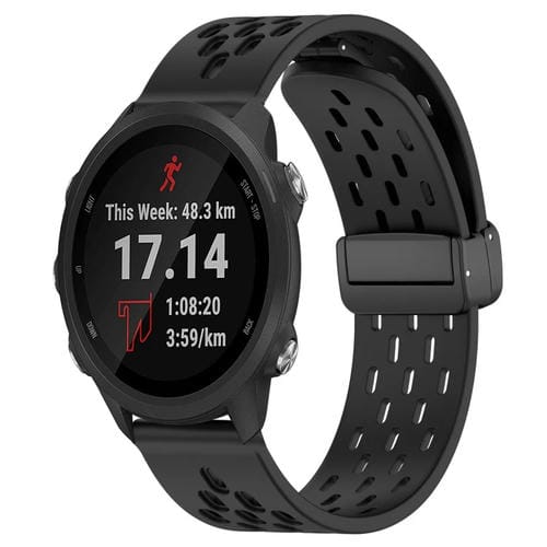 Correa de Silicona para Garmin Forerunner 245 Music con Cierre Magnético Plegable 20mm (Negro)