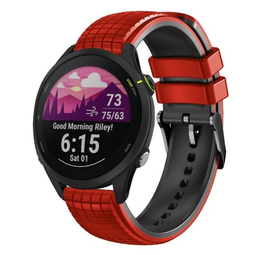Correa silicona mesh 22mm para Garmin Forerunner 255 Music (Negro Rojo)
