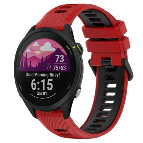 Correa de silicona bicolor 22mm para Garmin Forerunner 255 Music (Rojo + Negro)