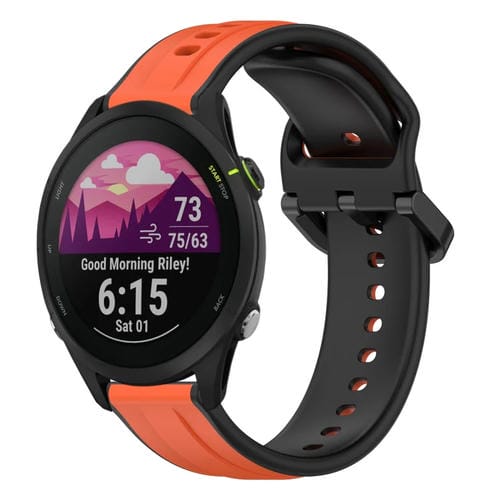 Banda de Reloj Silicona Garmin Forerunner 255 Music Dos Colores Bucle Convexo 22mm (Naranja + Negro)