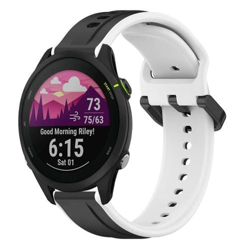 Banda de Reloj Silicona para Garmin Forerunner 255 Music 22mm (Negro + Blanco)