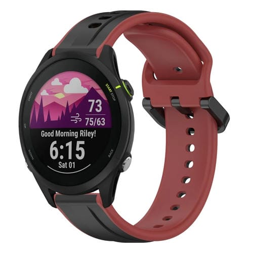 Banda de Reloj para Garmin Forerunner 255 Music Silicona Dos Colores Bucle Convexo 22mm (Negro + Rojo)