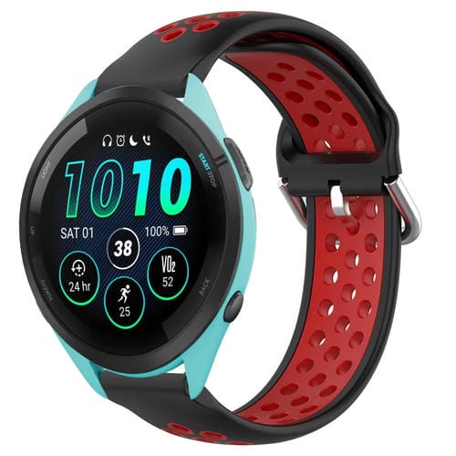 Banda de Reloj para Garmin Forerunner 265 Music 22mm Silicona Deportiva Perforada (Negro + Rojo)