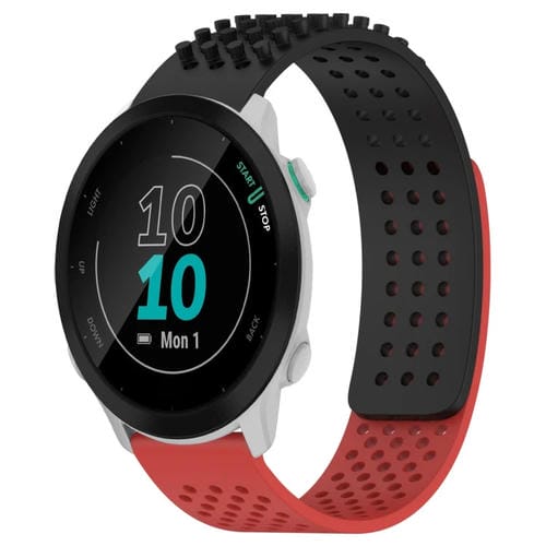 Correa de Silicona para Garmin Forerunner 55 con Puntos 3D Transpirables y Orificios 20mm (Negro + Rojo)