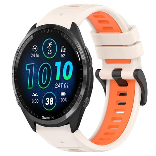 Para Garmin Forerunner 965 22mm Sports Two-Color Silicone Watch Band (Starlight + Orange)