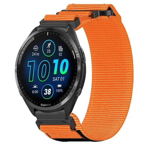 Correa de Reloj para Garmin Forerunner 965 con Cierre de Gancho y Bucle de Nailon 22mm (Naranja)