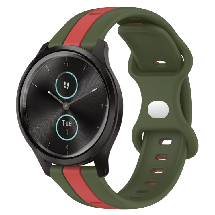 Correa de Reloj Garmin Garminmove Style 20mm Silicona Dos Colores (Rojo + Verde Militar) Hebilla Mariposa