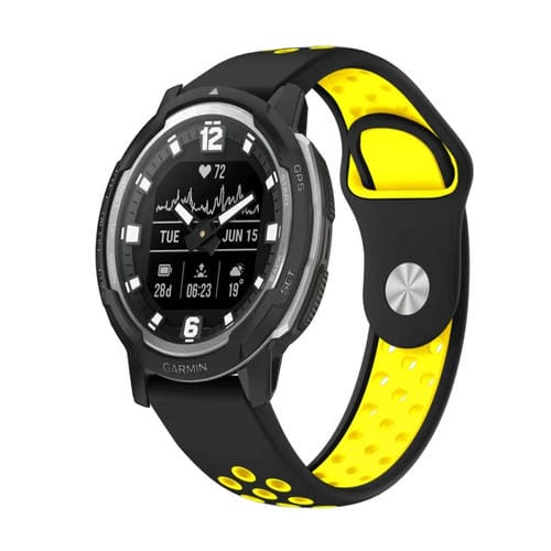 Banda de Reloj Silicona para Garmin Instinct Crossover Solar 22mm Sports (Negro + Amarillo)