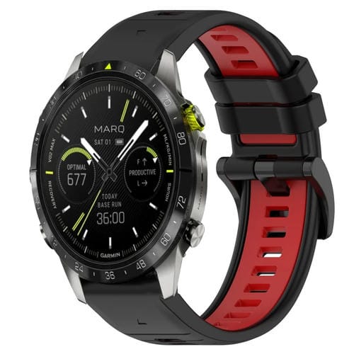Correa de silicona deportiva para Garmin Marq Athlete Gen 2 22mm (Negro + Rojo)