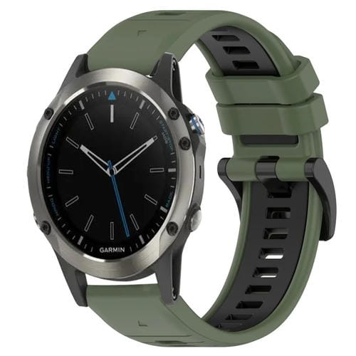 Correa Garmin Quatix 5 22mm Silicona Deportiva Dos Colores (Verde Oliva + Negro)