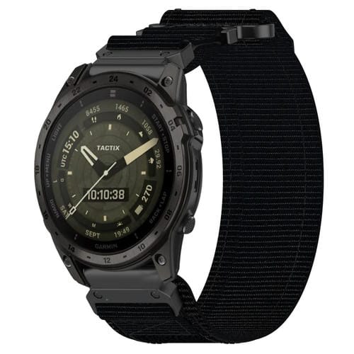 Correa de Reloj para Garmin Tactix 7 Amoled Nailon 26mm con Cierre de Gancho (Negro)