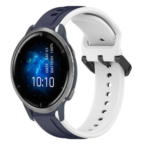 Correa de Reloj para Garmin Venu 2 Silicona Dos Colores Bucle Convexo 22mm (Azul Medianoche + Blanco)