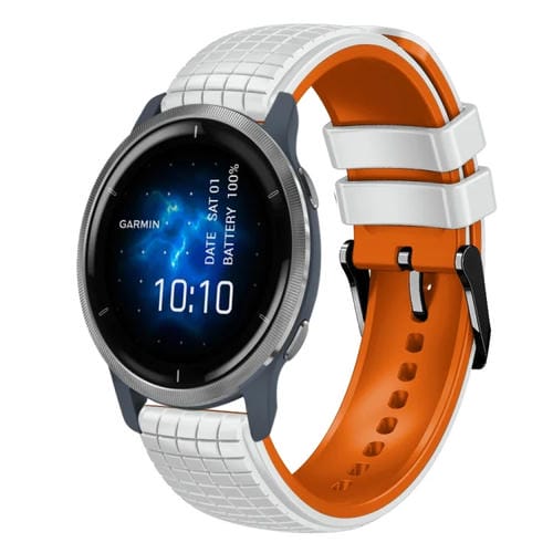 Correa de Reloj Silicona para Garmin Venu 2 Malla Dos Colores 22mm (Blanco Naranja)