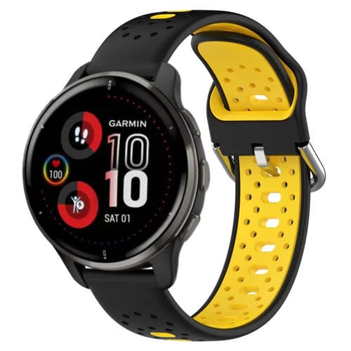 Banda de Reloj para Garmin Venu 2 Plus 20mm Silicona Transpirable Dos Colores (Negro + Amarillo)