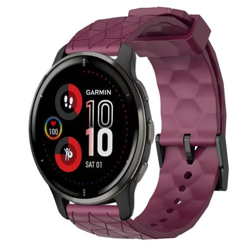 Banda de Reloj Silicona Garmin Venu 2 Plus 20mm Patrón de Fútbol (Rojo Vino)