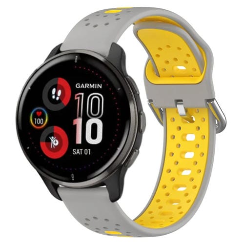 Correa de Reloj para Garmin Venu 2 Plus Silicona Bicolor Transpirable 20mm (Gris + Amarillo)