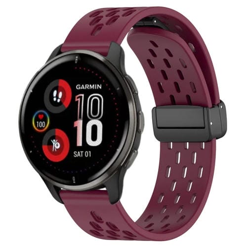 Correa de Silicona para Garmin Venu 2 Plus con Cierre Magnético Plegable de 20mm (Rojo Vino)