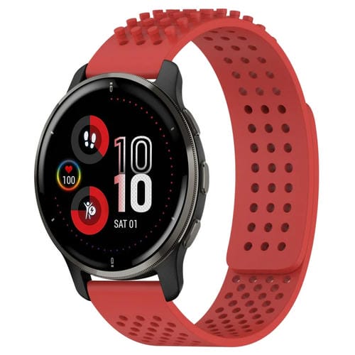 Correa de Reloj para Garmin Venu 2 Plus Silicona Puntos 3D Transpirables Orificios 20mm (Rojo)