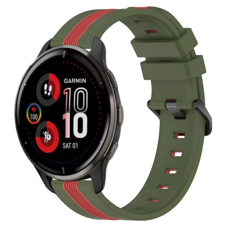 Correa de Reloj Garmin Venu 2 Plus silicona doble color 20mm (Verde Militar + Rojo)