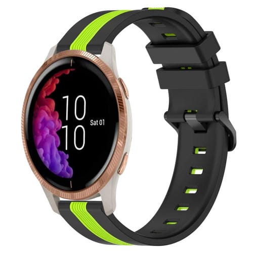 Correa de Reloj para Garmin Venu Silicona Dos Colores Vertical 20mm (Negro + Verde Lima)