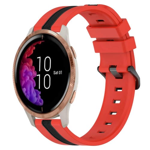 Correa de Reloj para Garmin Venu Silicona Dos Colores Vertical 20mm (Rojo + Negro)