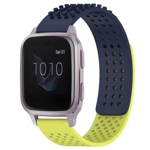 Correa de Reloj para Garmin Venu Sq Silicona con Puntos 3D Transpirables 20mm (Azul Medianoche + Verde Lima)