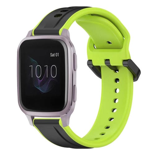 Correa de Silicona para Garmin Venu Sq con Bucle Convexo de 20mm (Negro + Lima)