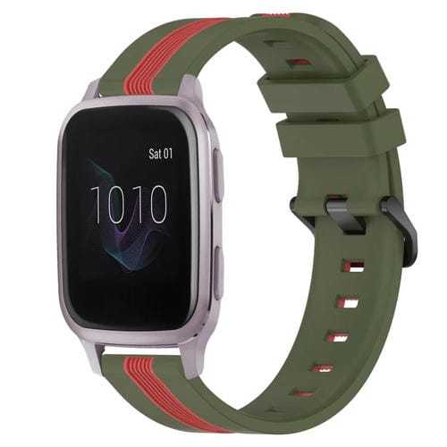 Correa de Silicona para Garmin Venu Sq 20mm Dos Colores (Verde Militar + Rojo)
