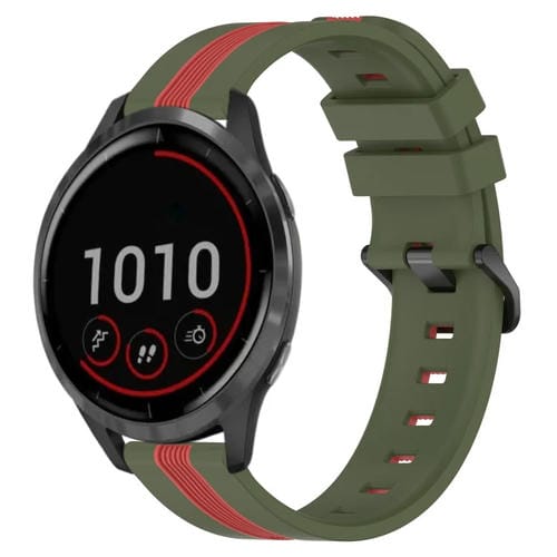 Correa de Reloj para Garmin Vivoactive 4 de Silicona Dos Colores Vertical 22mm (Verde Militar + Rojo)